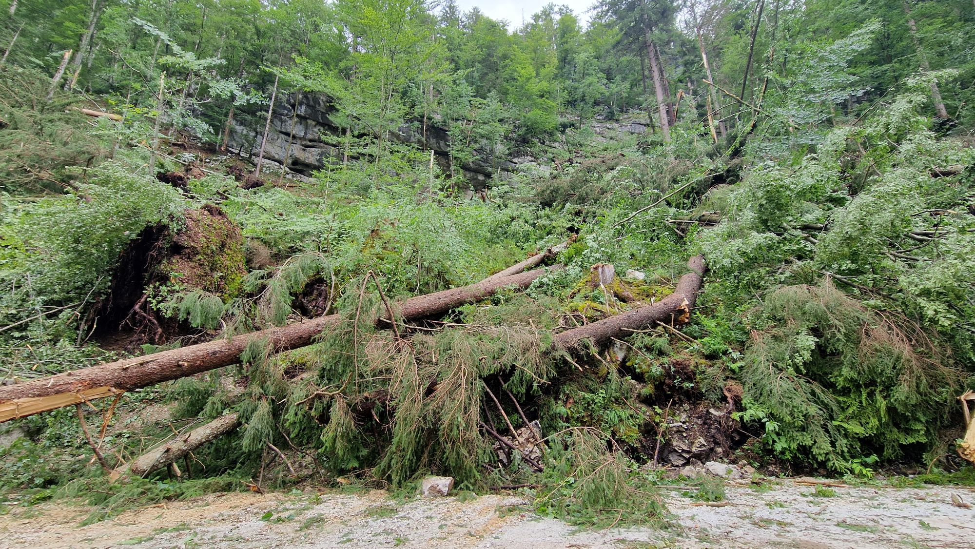 - На схилах і у вищих районах більшу кількість поваленої деревини було зафіксовано у районах Погор’є, Козьяк, Бохінь, Єловица, Бовшко, Єзерскі, Кокра, Преддвор, гірському масиві Крвавац.