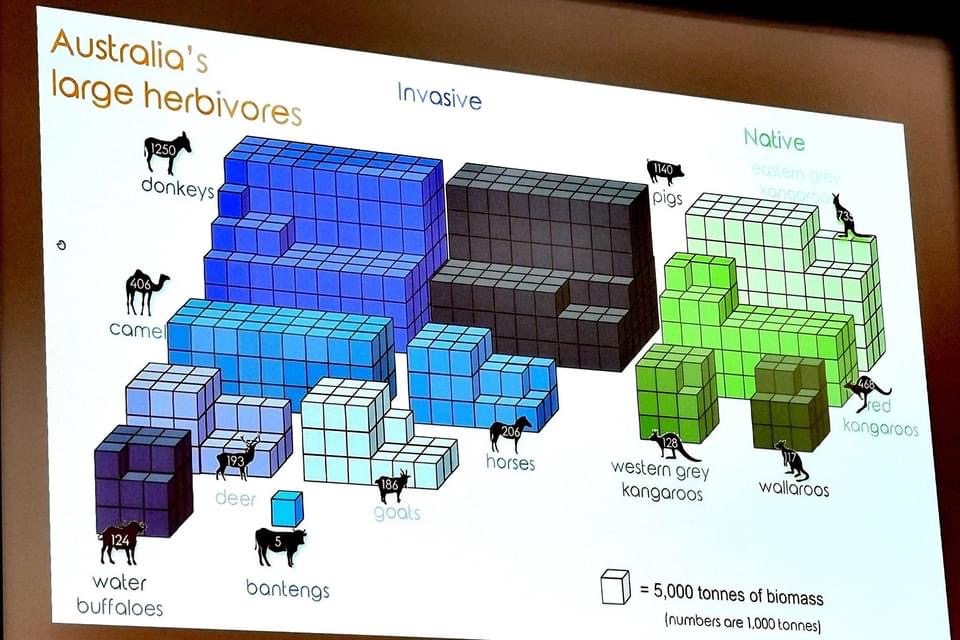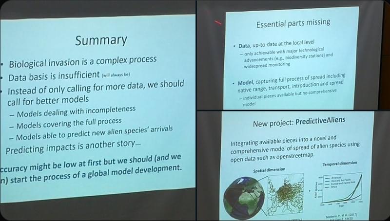Для прикладу, група вчених Європейської мережі інформації про чужорідні види (EASIN) запропонувала низку цікавих ідей щодо кількісного визначення біомаси як показника біологічної інвазії. Так, Френк Куршан (Паризький університет, CNRS, AgroParisTech, Франція) представив кілька презентацій, зокрема на прикладі великих травоїдних тварин, завезених (і місцевих) до Австралії. Він також обговорював підтримку довготривалих досліджень і управління ними.