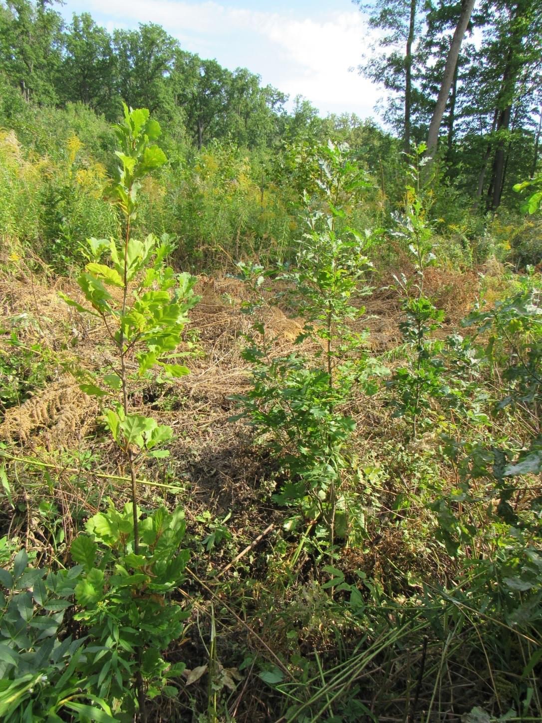 Результати обстежень, проведених на варіантах, спрямованих на природне відновлення, свідчать, що у віці 15 років було сформовано природні молодняки, які характеризуються значним біологічним різноманіттям і переважанням у складі дуба звичайного. Склад сформованих молодняків (6–8Дз1–3Клг1Яз, Лпд, Клп) відповідає складу корінного деревостану.